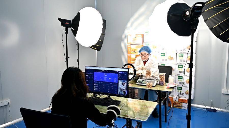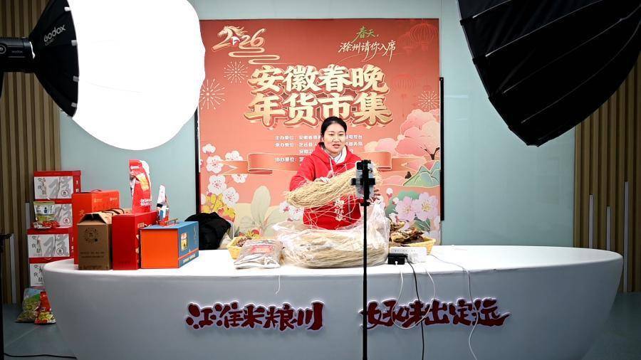 善小渔在2026定远年货节上现场直播。
