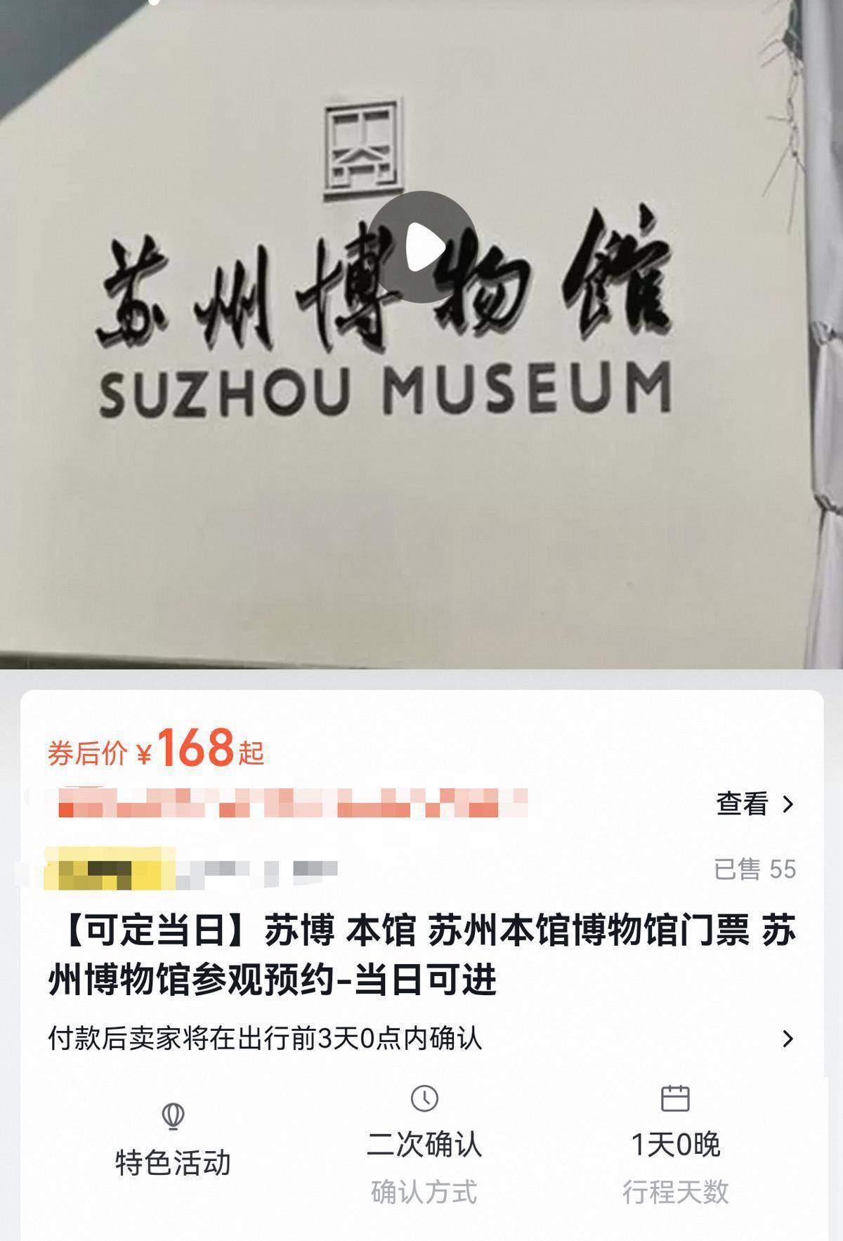 记者平安到,苏州博物馆官网《盛开做事指南》中,未标注奉陪东说念主员的身份条件。旅行平台上正在售卖此类“门票”,“黄牛”商家暗意,官网没票后只可安排带入,标价168元一位。搭客需提前两小时下单,并预约技巧,现场由老东说念主领导插足苏州博物馆,走绿色通说念免列队,本日“百分百”带入。
