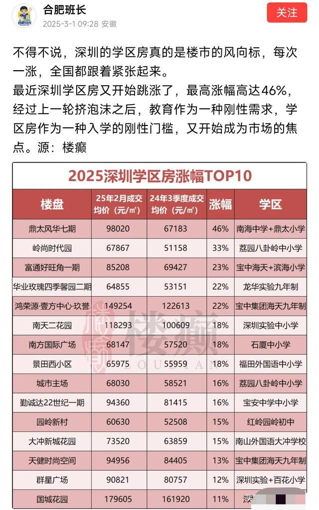如上图所示,咱们可以明晰地看到,我看了一下2025年深圳的学区房涨幅名次。