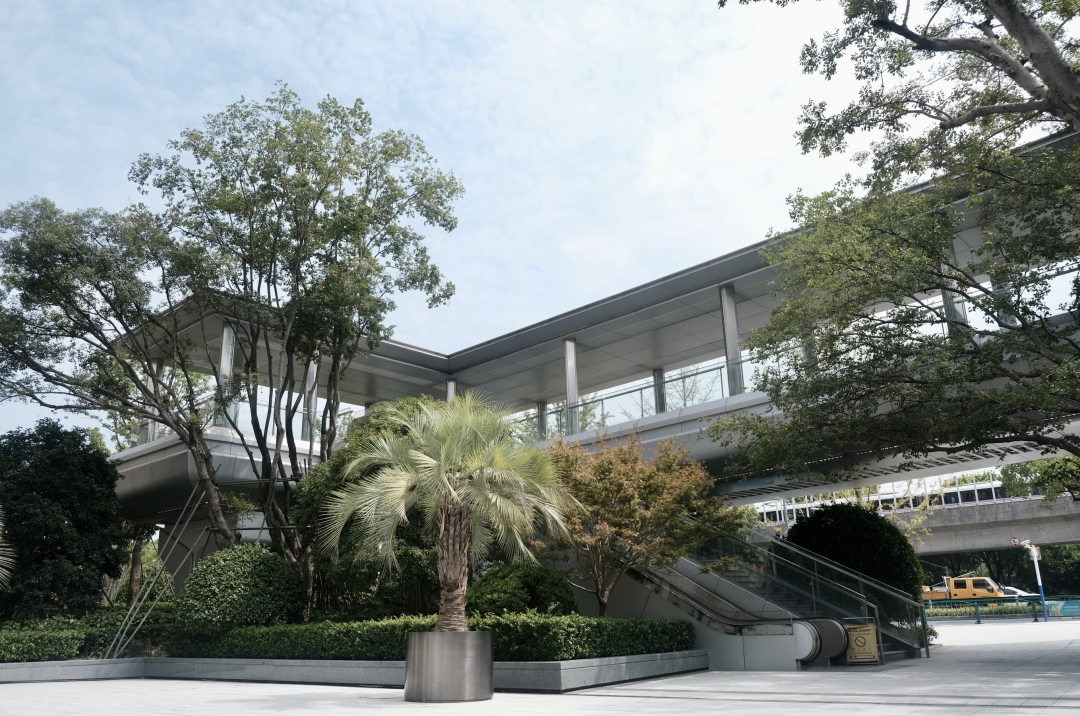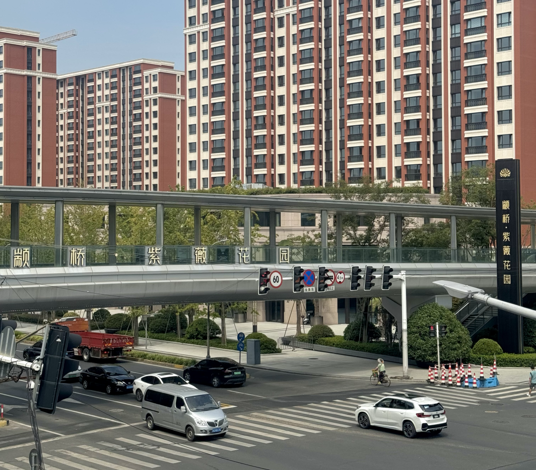 从5号线颛桥站下车去到宝华紫薇花坛的路上,在地铁站与神气之间有一条空中连廊