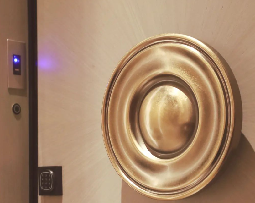 为了让女士也不错放松的打开这扇镇静的门,门的里面也在侧边建设了一个自动按钮